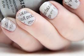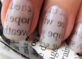 - Pegar o pedaço de jornal ou revista e colocar em cima da unha.